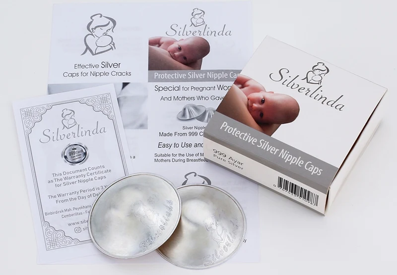 Silverlinda Gümüş Koruyucu Göğüs Ucu Kapakları, hamile ve emziren annelerin kullanımı için 999 ayar gümüşten özel olarak tasarlanmış bir üründür. Bu ürün annelerin rahat bir emzirme süreci yaşamasından tutun da başka birçok noktaya kadar önemli faydalar sunar.